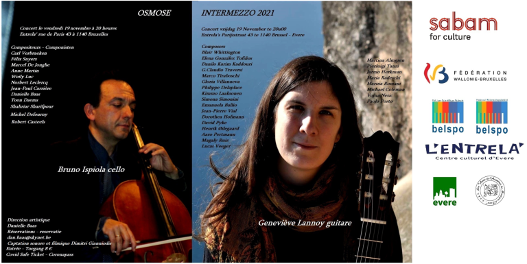 Premiere of my work "Haiku", for guitar and piano, at the Osmose Intermezzo 2021 that took place in Brussels on Friday, November 19, at 8:00 p.m. It is a pleasure to write music for professionals of such artistic quality as Bruno Ispiola (cello) and Geneviéve Lannoy (guitar).