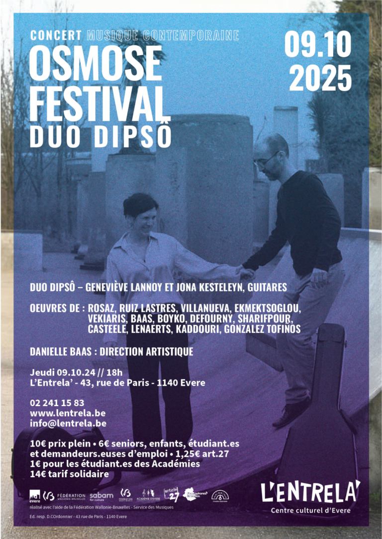 The performance will be by the Duo Dipsô, consisting of guitarists Geneviève Lannoy and Jona Kesteleyn.