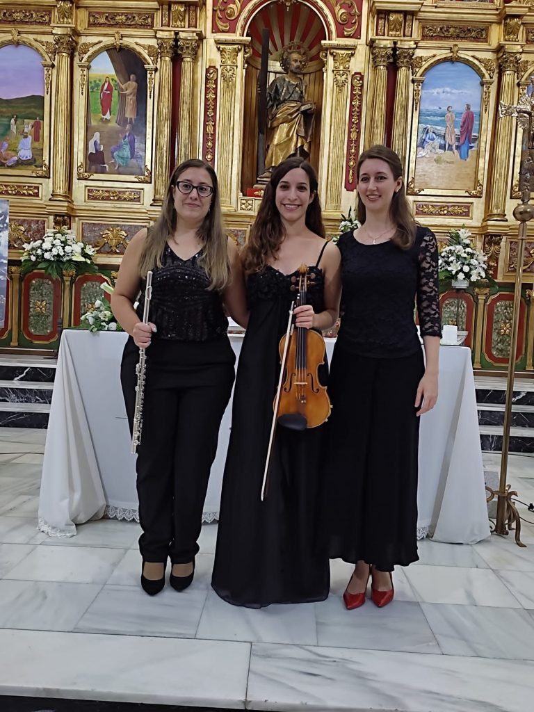 Because of the celebration in honor of the Virgen de las Mercedes, patron saint of the town Villaluenga de la Sagra, a concert of sacred music is held on September 25, in the Church of San Andrés, in which we perform works in honor of the Virgin, including the popular hymn to close the concert, performed by the Cameristic Group "Resonare Artis", on this occasion formed by Sara Palacios (violin), Carolina Camacho (flute) and Elena G. Tofiños (piano and musical arrangements).